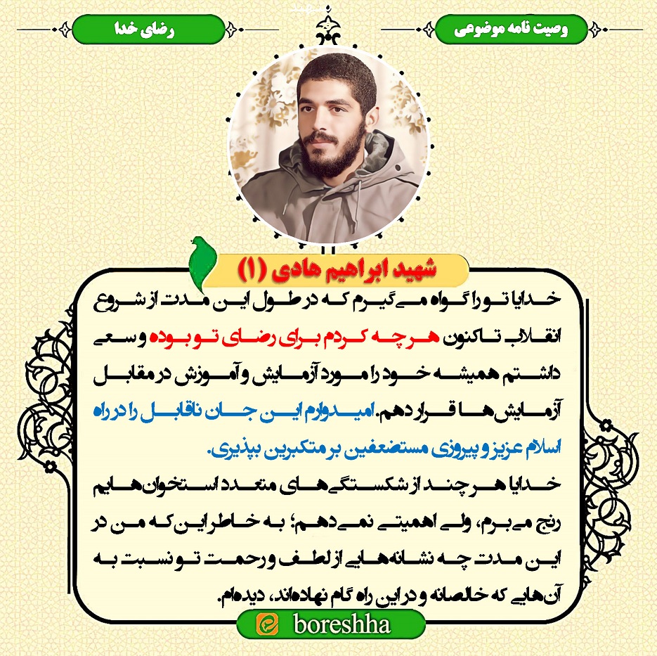 - رضای خدا در وصیت نامه شهید ابراهیم هادی