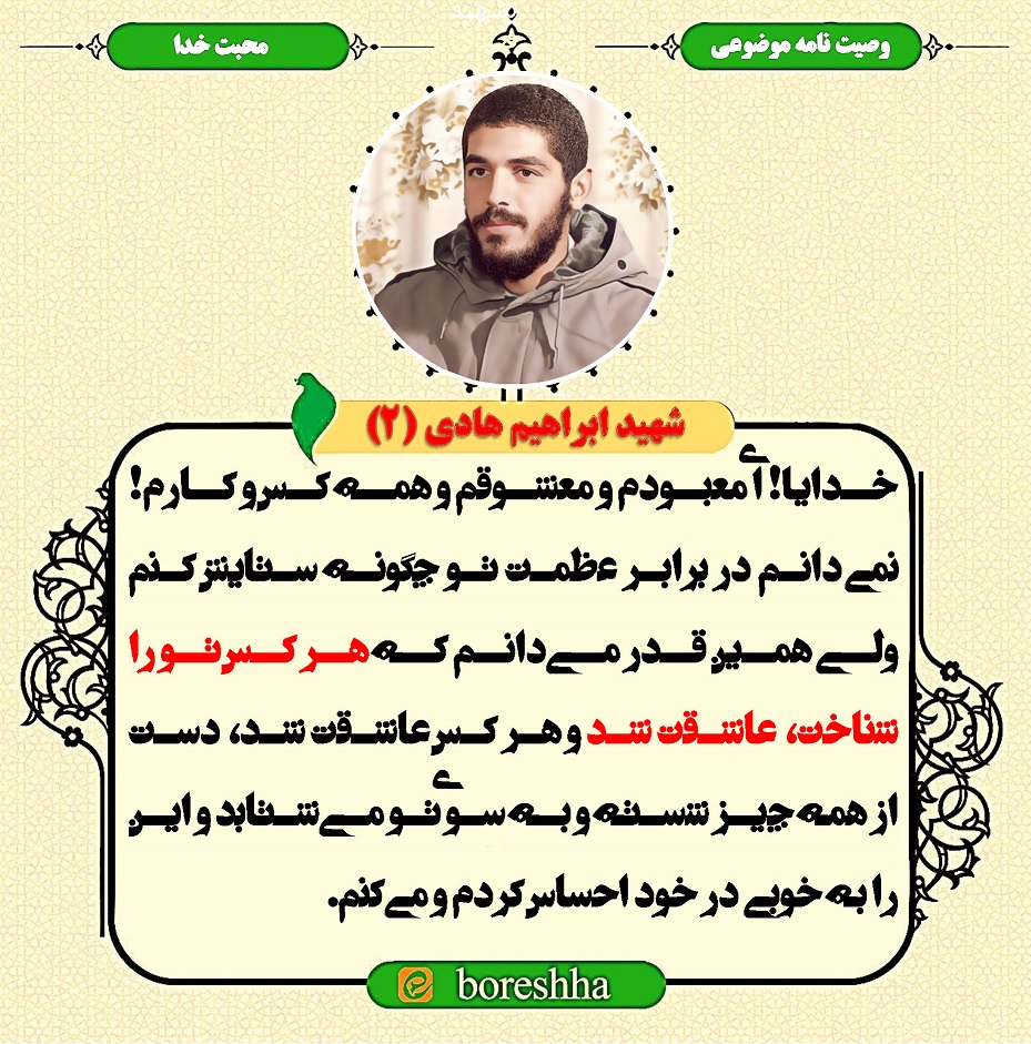 - محبت خدا در وصیت نامه شهید ابراهیم هادی
