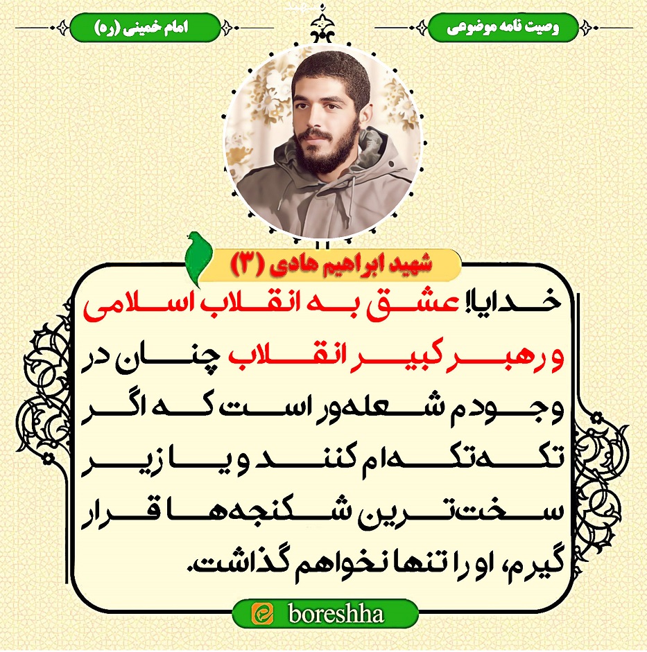- امام خمینی در وصیت نامه شهید ابراهیم هادی