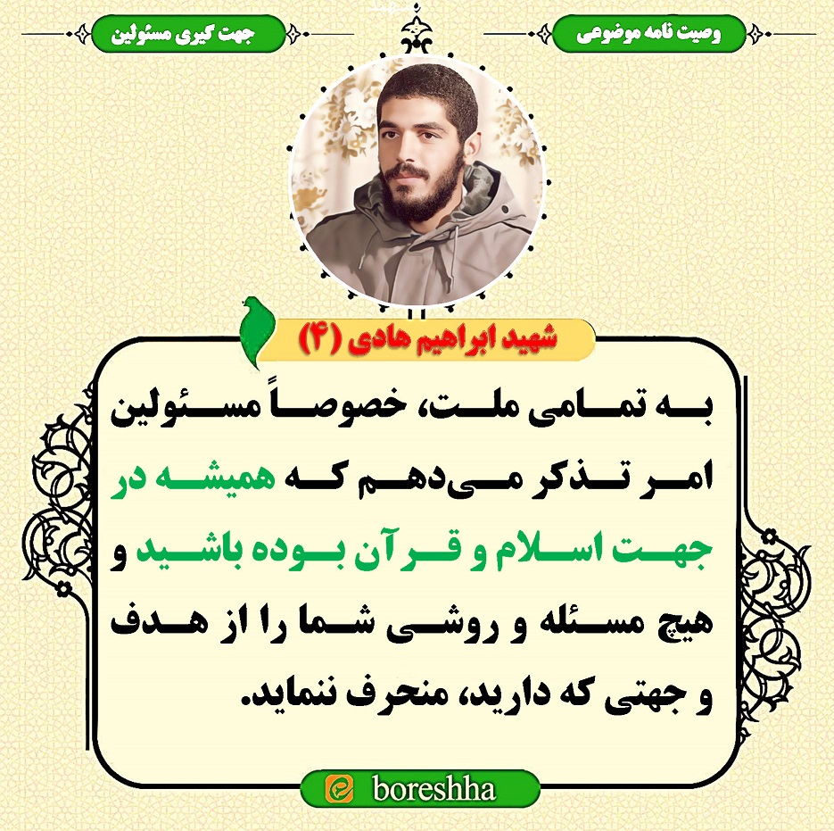 - جهت گیری مسئولین در وصیت نامه شهید ابراهیم هادی