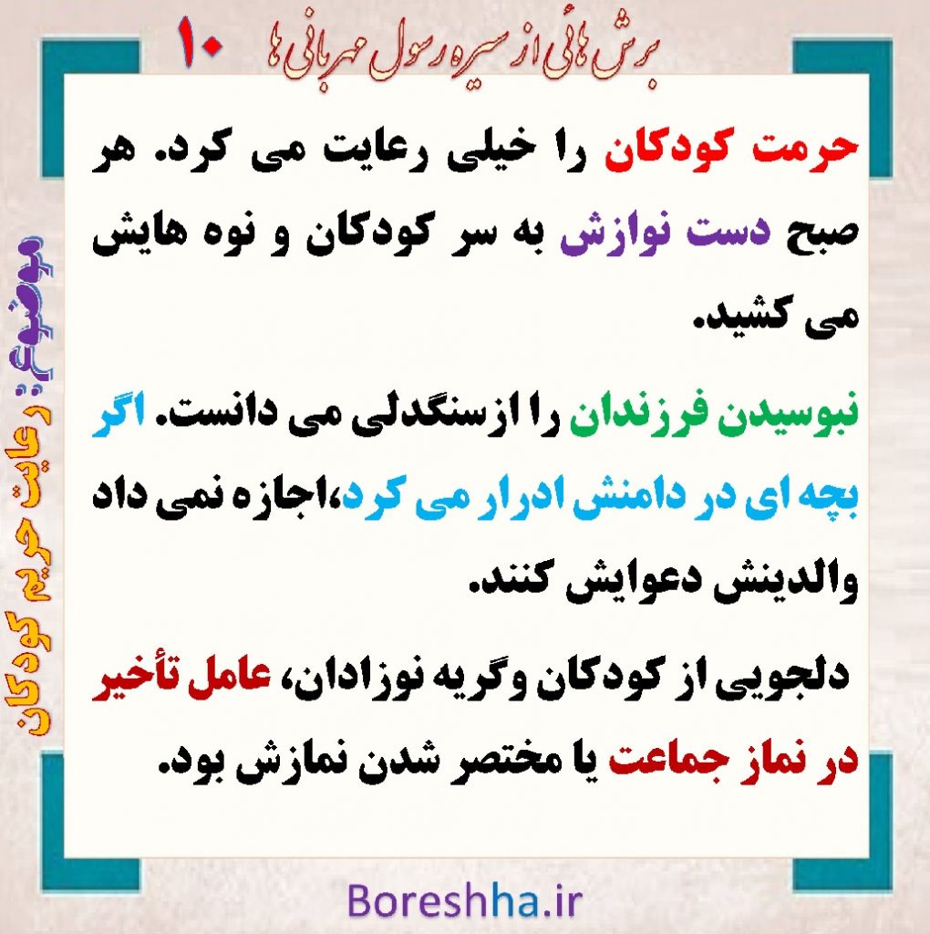 برش دهم از سیره رسول خدا (ص) با موضوع رعایت حریم کودکان: