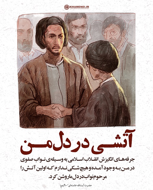 من شاید پانزده یا شانزده سالم بود که مرحوم «نوّاب صفوی» به مشهد آمد. مرحوم نواب صفوی برای من، خیلی جاذبه داشت و به کّلی مرا مجذوب خودش کرد. هر کسی هم که آن وقت در حدود سنین ما بود، مجذوب نوّاب صفوی میشد؛ از بس این آدم، پُرشور و بااخلاص، پر از صدق و صفا و ضمناً شجاع و صریح و گویا بود. من می توانم بگویم که آنجا به طور جدّی به مسائل مبارزاتی و به آنچه که به آن مبارزه سیاسی می گوییم، علاقهمند شدم.