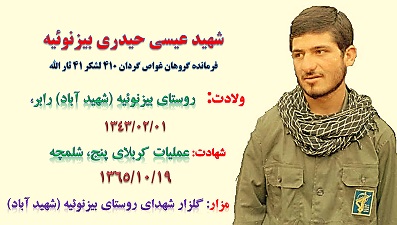 کتاب عیسای حیدری ؛ خاطرات شهید عیسی حیدری. نویسنده: حسین فاطمی نیا؛ ناشر: بنیاد حفط آثار و نشر آثار دفاع مقدس کرمان. نوبت چاپ: اول-۱۳۸۸٫ صفحه ۲۰٫